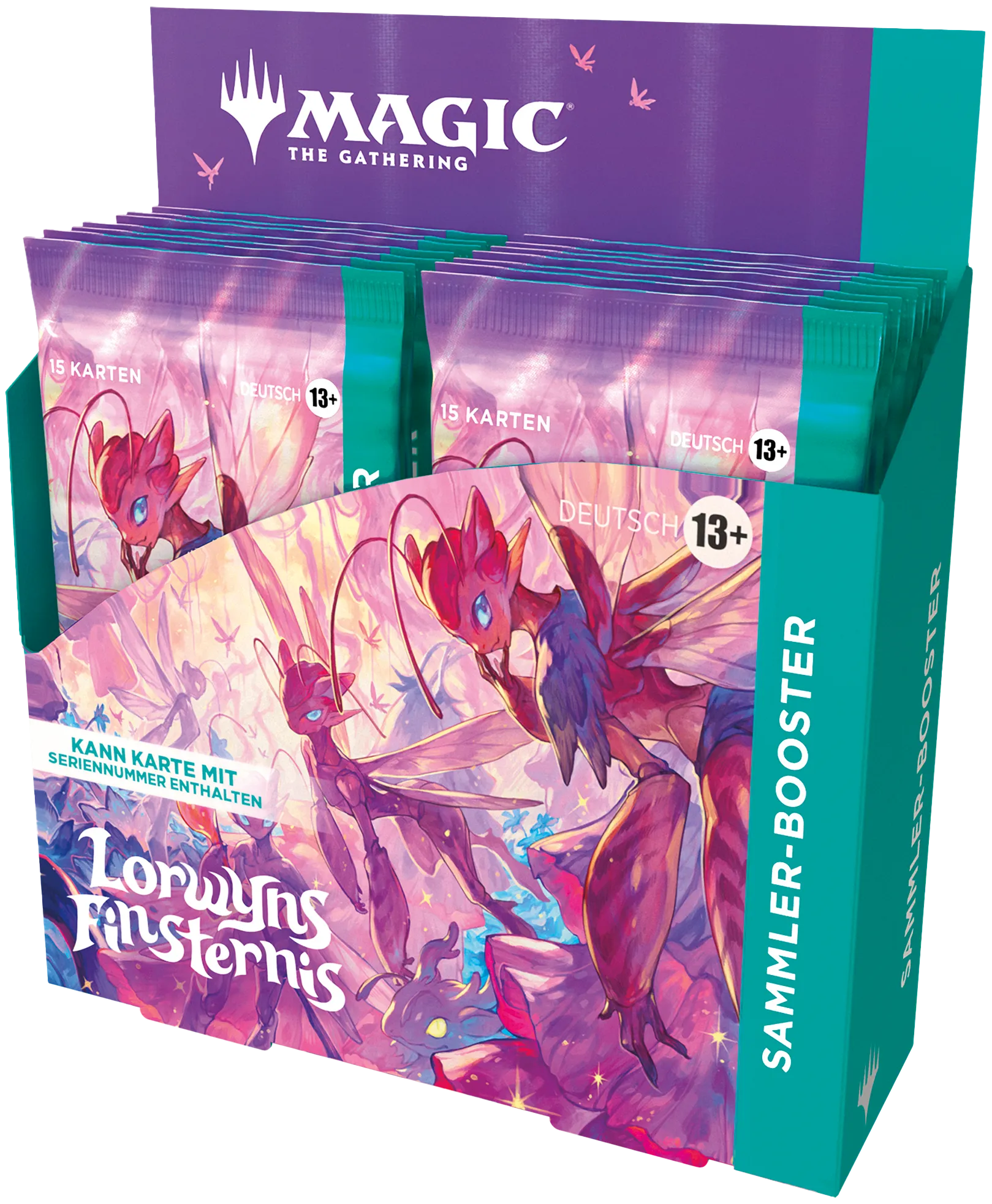 Diese Sammler-Booster sind wie kleine Schatzkisten voller Pracht – üppig, glänzend und voller Überraschungen. In jeder Packung warten seltene und sagenhaft seltene Karten, funkelnde Foilkarten und prachtvolle Standardländer mit großflächiger Illustration im Stil von Lorwyn oder Schattenmoor.